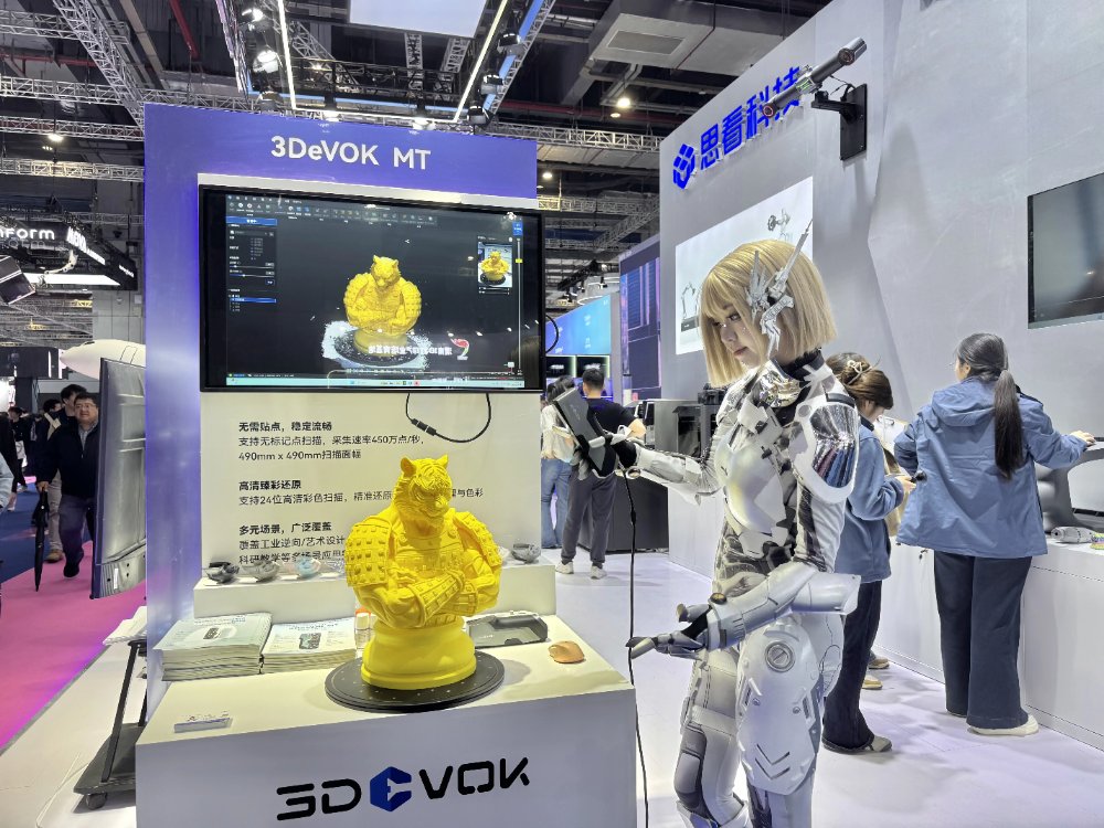 在现场演示中,3DeVOK不仅展示了高精度三维扫描能力,更完整呈现了“数据采集—模型处理—3D打印输出”的一体化流程。从人形机械姬到真人mini手办,现实世界中的实体能够被快速获取、精准还原,并通过3D打印再次呈现,让“扫描→建模→打印”的闭环变得直观可见,“虚实融合”的应用场景也由此进一步拓展。