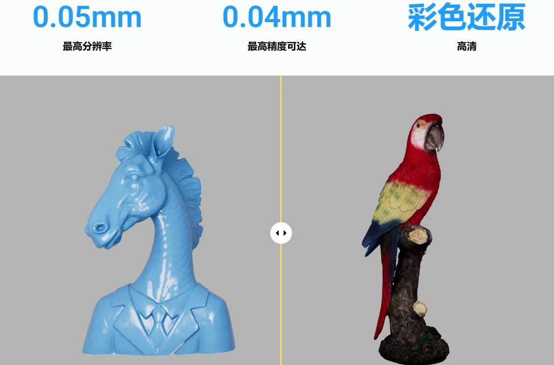 - 真实色彩:24位高清彩色扫描,结合高分辨率相机与贴图置换技术,精准复刻物体纹理与色彩,助力艺术设计、文物数字化存档、彩色3D打印等应用。