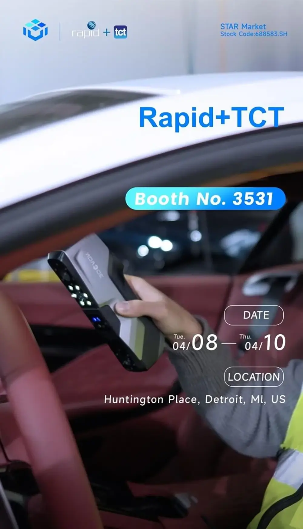 2025年4月8–10日,全球领先的增材制造与3D打印盛会——RAPID + TCT 2025在美国底特律 Huntington Place 圆满落幕。我们有幸受邀参展,携3DeVOK MT 专业级3D扫描仪亮相,与来自全球的500多家参展商及逾10,000名专业观众共聚一堂,分享前沿技术与创新实践。