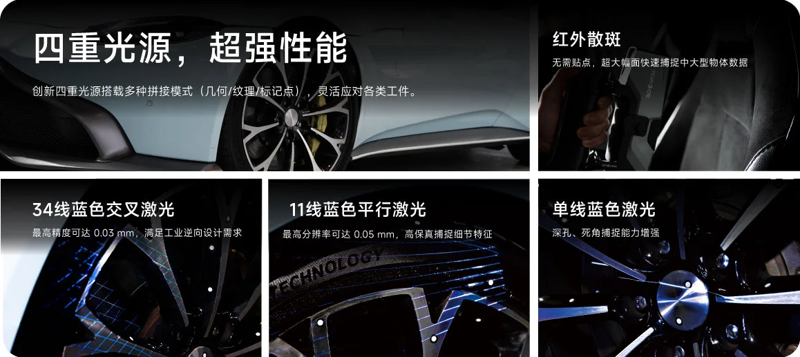 单线蓝色激光:针对深孔、死角捕捉能力优化,显著提升难以触及区域的数据完整性,让复杂工件扫描更加从容。
